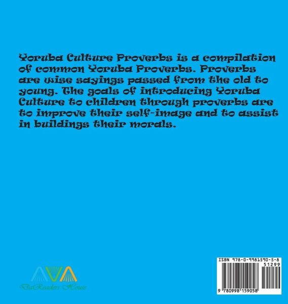 Yoruba Culture Proverbs is a compilation of common Yoruba Proverbs. Proverbs are wise sayings passed from the old to young. The goals of introducing Yoruba Culture to children through proverbs are to improve their self-image and to assist in buildings their morals.