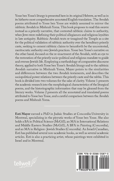 The 15 liturgical poems (piyyutim) attributed to Yosse ben Yosse, are presented in this book as an invitation to study this unique body of work, both in its original Hebrew and now, for the first time, in English as well. Set against the historical upheavals of 5th century Jewish Palestine, these works are an important addition to existing historical records that have survived from Late Antiquity. Yosse ben Yosse, a distinctive priestly voice, contested rabbinic claims to authority. The similarities and differences between Yosse ben Yosse's narrative and the corresponding rabbinic narratives are instructive. They help describe the socio-political power relations between the priestly caste and the rabbis, and to glean some information regarding the rise of rabbinic Judaism. Rabbinic texts re-imagined the Yom Kippur temple rites as a site for the political validation of rabbinic authority over the priestly caste, seeking to cement rabbinic claims to henceforth be the uncontested authority in Jewish life. Yosse ben Yosse's narrative on the other hand, focused on the re-enactment of Temple Avodah, with an eye to the restoration of the priestly authority over Jewish practice in the post-destruction era. The power contest between the revolutionary rabbinic movement and the conservative priestly caste discloses new aspects of the cultural and religious diversity of Jewish responses to the destruction of the Second Temple, when Jews were redefining their political allegiances and religious loyalties in late antiquity. The study thus contributes to our understanding of Jewish religious and political developments that took place in late antique Palestine.
