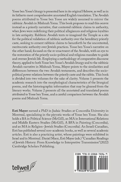 The 15 liturgical poems (piyyutim) attributed to Yosse ben Yosse are presented in this book as an invitation to study this unique body of work, both in its original Hebrew and now, for the first time, in English as well. Set against the historical upheavals of fifth-century Jewish Palestine, these works are an important addition to existing historical records that have survived from late antiquity. Yosse ben Yosse, a distinctive priestly voice, contested rabbinic claims to authority. The similarities and differences between Yosse ben Yosse's narrative and the corresponding rabbinic narratives are instructive. They help describe the socio-political power relations between the priestly caste and the rabbis, and to glean some information regarding the rise of rabbinic Judaism. Rabbinic texts re-imagined the Yom Kippur temple rites as a site for the political validation of rabbinic authority over the priestly caste, seeking to cement rabbinic claims to henceforth be the uncontested authority in Jewish life. Yosse ben Yosse's narrative, on the other hand, focused on the re-enactment of Temple Avodah, with an eye to the restoration of the priestly authority over Jewish practice in the post-destruction era. The power contest between the revolutionary rabbinic movement and the conservative priestly caste discloses new aspects of the cultural and religious diversity of Jewish responses to the destruction of the Second Temple, when Jews were redefining their political allegiances and religious loyalties in late antiquity. The study thus contributes to our understanding of Jewish religious and political developments that took place in late antique Palestine.
