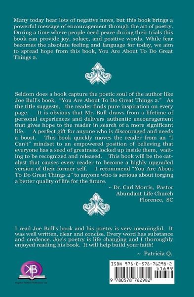 You're About to do Great Things Volume II a collection of art through poetry which speaks to personal experiences in life, the beauty of creation, God, family, positive messages, and a call to better living..