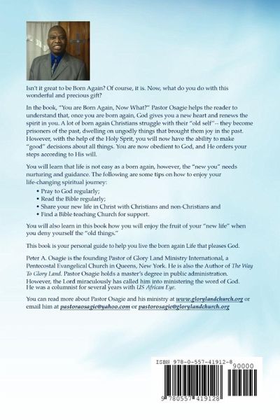 In the book, ""You are Born Again, Now What?"" Pastor Osagie helps the reader to understand that, once you are born again, God gives you a new heart and renews the spirit in you. A lot of born again Christians struggle with their ""old self""-- they become prisoners of the past, dwelling on ungodly things that brought them joy in the past. However, with the help of the Holy Sprit, you will now have the ability to make ""good"" decisions about all things. You are now obedient to God, and He orders your steps according to His will. You will learn that life is not easy as a born again, however, the ""new you"" needs nurturing and guidance. This book is your personal guide to help you live the born again Life that pleases God.