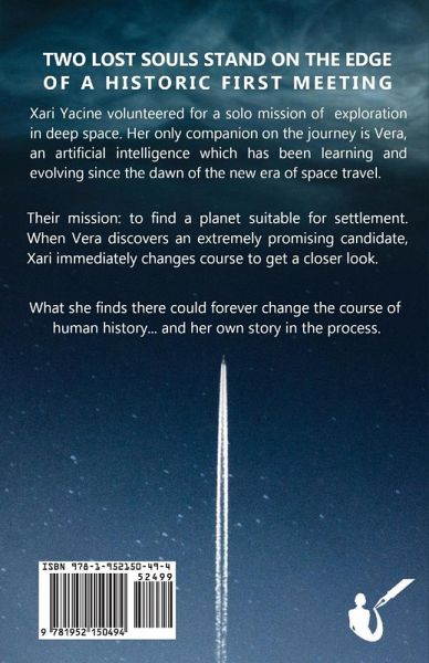 Two lost souls stand on the edge of a historic first meeting. Xari Yacine volunteered for a solo mission of exploration in deep space. Her only companion on the journey is Vera, an artificial intelligence which has been learning and evolving since the dawn of the new era of space travel. Their mission: to find a planet suitable for settlement. When Vera discovers an extremely promising candidate, Xari immediately changes course to get a closer look. What she finds there could forever change the course of human history... and her own story in the process.