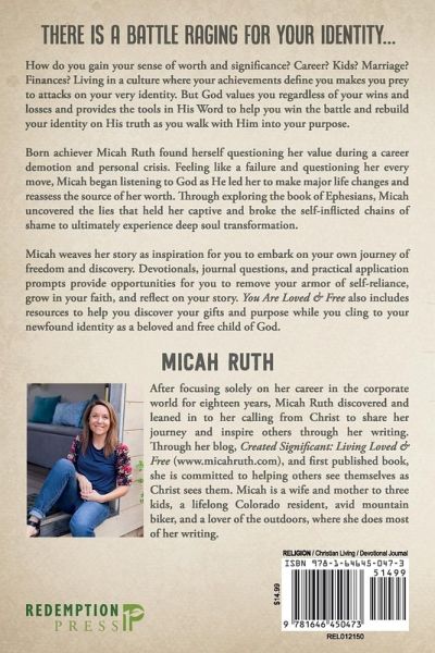There is a battle raging for your identity . . . How do you gain your sense of worth and significance? Career? Kids? Marriage? Finances? Living in a culture where your achievements define you makes you prey to attacks on your very identity. But God values you regardless of your wins and losses and provides the tools in His Word to help you win the battle and rebuild your identity on His truth as you walk with Him into your purpose. Born achiever Micah Ruth found herself questioning her value during a career demotion and personal crisis. Feeling like a failure and questioning her every move, Micah began listening to God as He led her to make major life changes and reassess the source of her worth. Through exploring the book of Ephesians, she uncovered the lies that held her captive, and she broke the self-inflicted chains of shame to ultimately experience deep soul transformation. Micah weaves her story as inspiration for you to embark on your own journey of freedom and discovery. Devotionals, journal questions, and practical application prompts provide opportunities for you to remove your armor of self-reliance, grow in your faith, and reflect on your story. You Are Loved & Free also includes resources to help you discover your gifts and purpose while you cling to your newfound identity as a beloved and free child of God.