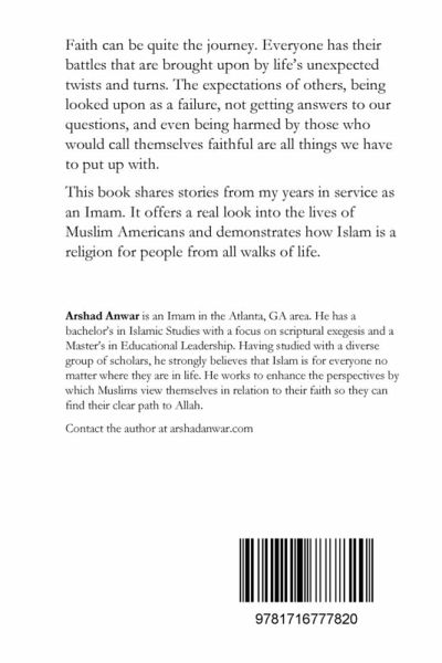Faith can be quite the journey. Everyone has their battles that are brought upon by life's unexpected twists and turns. The expectations of others, being looked upon as a failure, not getting answers to our questions, and even being harmed by those who would call themselves faithful are all things we have to put up with. This book shares stories from my years in service as an Imam. It offers a real look into the lives of Muslim Americans and demonstrates how Islam is a religion for people from all walks of life.