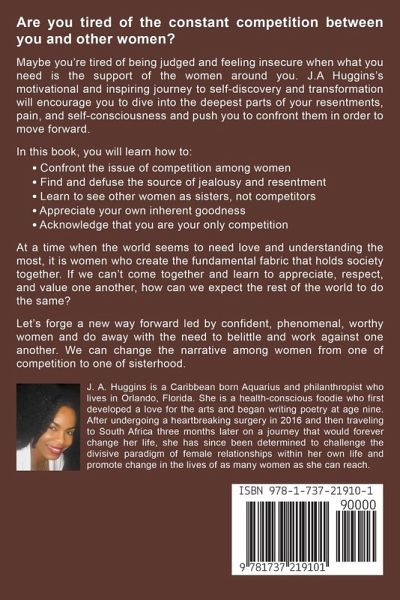 Are you tired of the constant competition between you and other women? Maybe you're tired of being judged and feeling insecure when what you need is the support of the women around you. As a former singer and beauty pageant winner, J.A Huggins understands the paralyzing effects of interpersonal female rivalry and presents a far from the average self-help guide to putting an end to the never-ending cycle of competition among women. Through her motivational and inspiring personal journey to self discovery and transformation, she encourages you to dive into the deepest parts of your authentic self to unearth the source of your resentments, pain, and self-consciousness that anchor you to your negative feelings and pushes you to confront them in order to move forward. In this book, you will learn how to:Confront the issue of competition among women Find and defuse the source of jealousy and resentment Learn to see other women as sisters, not competitors Appreciate your own inherent goodness Acknowledge that you are your only competition At a time when the world seems to need love and understanding the most, it is women who create the fundamental fabric that holds society together. If we can't come together and learn to appreciate, respect, and value one another, how can we expect the rest of the world to do the same? Let's forge a new way forward led by confident, phenomenal, worthy women and do away with the need to belittle and work against one another. We can change the narrative among women from one of competition to one of sisterhood.