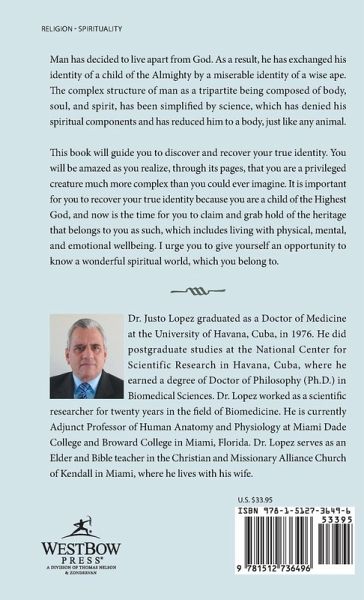 Man has decided to live apart from God. As a result, he has exchanged his identity of a child of the Almighty by a miserable identity of a wise ape. The complex structure of man as a tripartite being composed of body, soul, and spirit, has been simplified by science, which has denied his spiritual components and has reduced him to a body, just like any animal. This book will guide you to discover and recover your true identity. You will be amazed as you realize, through its pages, that you are a privileged creature much more complex than you could ever imagine. It is important for you to recover your true identity because you are a child of the Highest God, and now is the time for you to claim and grab hold of the heritage that belongs to you as such, which includes living with physical, mental, and emotional wellbeing. I urge you to give yourself an opportunity to know a wonderful spiritual world, which you belong to.