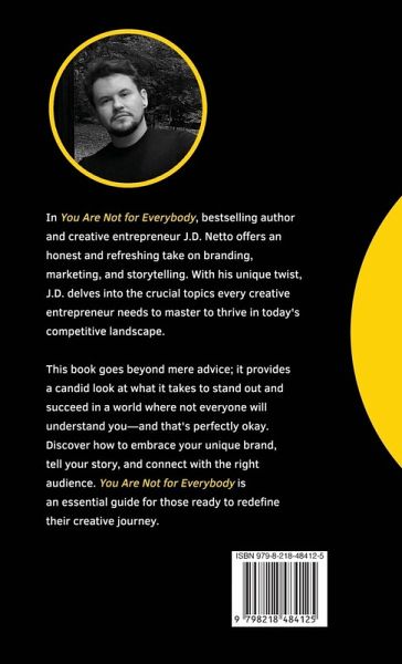 In You Are Not for Everybody, bestselling author and creative entrepreneur J.D. Netto offers an honest and refreshing take on branding, marketing, and storytelling. With his unique twist, J.D. delves into the crucial topics every creative entrepreneur needs to master to thrive in today's competitive landscape. This book goes beyond mere advice; it provides a candid look at what it takes to stand out and succeed in a world where not everyone will understand you-and that's perfectly okay. Discover how to embrace your unique brand, tell your story, and connect with the right audience. You Are Not for Everybody is an essential guide for those ready to redefine their creative journey.