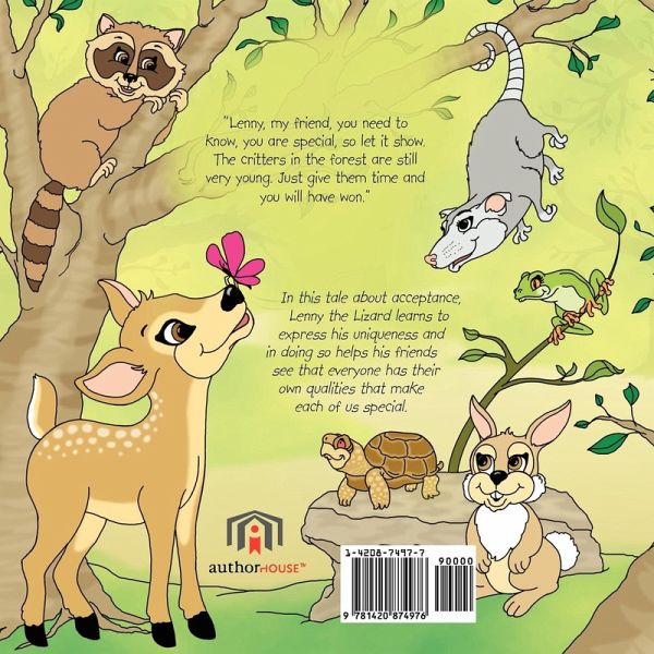 In this tale about acceptance, Lenny the Lizard learns to express his uniqueness and in doing so helps his friends see that everyone has their own qualities that make each of us special.