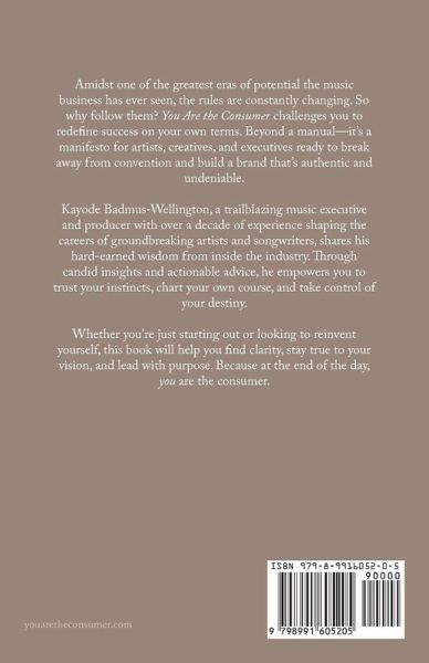 Amidst one of the greatest eras of potential the music business has ever seen, the rules are constantly changing. So why follow them? You Are the Consumer challenges you to redefine success on your own terms. Beyond a manual-it's a manifesto for artists, creatives, and executives ready to break away from convention and build a brand that's authentic and undeniable. Kayode Badmus-Wellington, a trailblazing music executive and producer with over a decade of experience shaping the careers of groundbreaking artists and songwriters, shares his hard-earned wisdom from inside the industry. Through candid insights and actionable advice, he empowers you to trust your instincts, chart your own course, and take control of your destiny. Whether you're just starting out or looking to reinvent yourself, this book will help you find clarity, stay true to your vision, and lead with purpose. Because at the end of the day, you are the consumer.