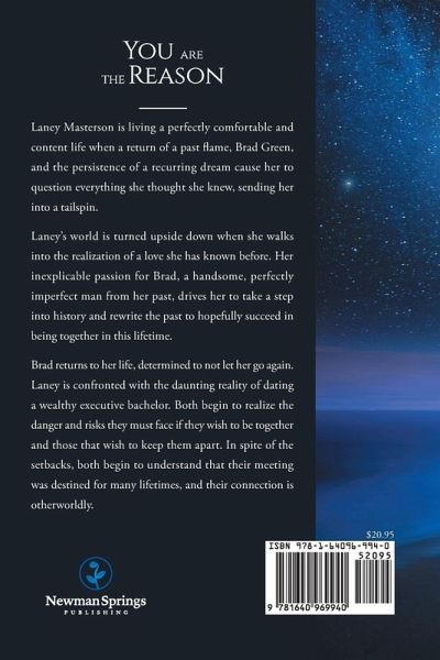Laney Masterson is living a perfectly comfortable and content life when a return of a past flame, Brad Green, and the persistence of a recurring dream cause her to question everything she thought she knew, sending her into a tailspin. Laney’s world is turned upside down when she walks into the realization of a love she has known before. Her inexplicable passion for Brad, a handsome, perfectly imperfect man from her past, drives her to take a step into history and rewrite the past to hopefully succeed in being together in this lifetime. Brad returns to her life, determined to not let her go again. Laney is confronted with the daunting reality of dating a wealthy executive bachelor. Both begin to realize the danger and risks they must face if they wish to be together and those that wish to keep them apart. In spite of the setbacks, both begin to understand that their meeting was destined for many lifetimes, and their connection is otherworldly.