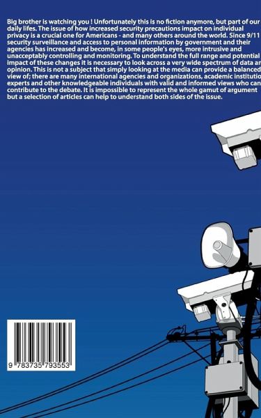 Big brother is watching you ! Unfortunately this is no fiction anymore, but part of our daily lifes.The issue of how increased security precautions impact on individual privacy is a crucial one for Americans - and many others around the world. Since 9/11 security surveillance and access to personal information by government and their agencies has increased and become, in some people's eyes, more intrusive and unacceptably controlling and monitoring. To understand the full range and potential impact of these changes it is necessary to look across a very wide spectrum of data and opinion. This is not a subject that simply looking at the media can provide a balanced view of; there are many international agencies and organizations, academic institutions, experts and other knowledgeable individuals with valid and informed views who can contribute to the debate. It is impossible to represent the whole gamut of argument but a selection of articles can help to understand both sides of the issue.