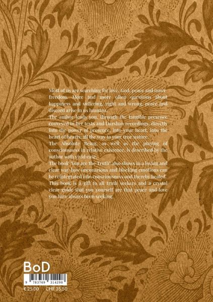 Almost all people are searching for love, God, peace and inner freedom. More and more often questions about happiness and suffering, right and wrong, peace and discord arise in us humans. The author leads you, through the tangible presence conveyed in her texts and Darshan recordings, directly into the power of presence, into your heart, into the heart of hearts, all the way to your true nature. The Absolute Being, as well as the playing of consciousness in relative existence, is described by the author with vivid ease. The book "You are The Truth" also shows in a loving and clear way how unconscious and blocking emotions can be reintegrated into consciousness and thereby healed. This book is a gift to all truth seekers and a crystal clear guide that you yourself are that peace and love you have always been seeking.