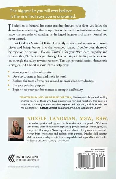 The biggest lie you will ever believe is the one that says you're unwanted. If rejection or betrayal has come crashing through your door - you know the emotional shattering this brings. You understand the brokenness. And you know the heartache of standing in the jagged fragments of a new normal you never wanted. But God is a Masterful Potter. He gently redeems and restores our broken pieces and brings beauty into the wounded spaces. If you've been shattered by rejection or betrayal, this book is for you! With deep empathy and vulnerability, Nicole walks you through her own steps to healing and cheers you on through the valley towards recovery. Through powerful stories, therapeutic strategies and biblical wisdom Nicole helps you:Stand against the lies of rejection. Develop courage to heal and move forward. Reclaim the truth of who you are and embrace your new identity. Use your pain for purpose. Begin to see your past brokenness as strength and beauty.