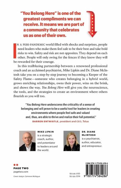 "You Belong Here" is a statement that every person longs to hear. It's the assurance that frees us to face our future because others have got our back. It's also one of the greatest compliments we can receive. It means we are part of a community that celebrates us as one of their own-with all the love and connection that comes with that status. In a peri-pandemic world where every day brings unpredictable shocks and surprises, the chief role of a leader is to make people feel safe to be their best and take bold risks to win. Safety and risk are not opposites. They depend on each other. People will only swing for the fences if they know they will be rewarded for their courage. In this pioneering partnership between a renowned professional coach and an acclaimed psychiatrist, Mike Lipkin and Dr. Diane McIntosh take you on a journey to becoming a Keeper of the Safety Flame-that's someone who creates belonging in a hybrid world, grows enriching relationships, owns their power, wins on the brink, and shows the way. You Belong Here gives you the tools and strategies, backed by science, to create an environment where others flourish so you will too.