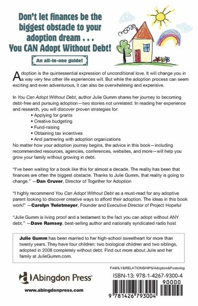 Many families want to adopt, but do not have the large amount of money it takes to complete a private domestic or international adoption. Some quickly give up the idea of adopting and are left feeling frustrated, overwhelmed, and discouraged. Those who choose to proceed often take out large loans or borrow from family and friends which adds to the financial pressure on the family. Author Julie Gumm shares proven strategies from her own experience as well as from others that include applying for grants, creative budgeting, and fundraising prospective adoptive parents can use to prepare for and avoid those high costs associated with adoption.
