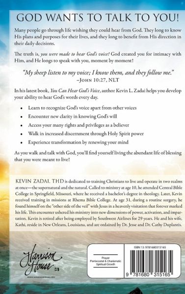 God Wants to Talk to You! Many people go through life wishing they could hear from God. They long to know His plans and purposes for their lives, and they long to benefit from His direction in their daily decisions. The truth is, you were made to hear God's voice! God created you for intimacy with Him, and He longs to speak with you, moment by moment! "My sheep listen to my voice; I know them, and they follow me." --John 10:27, NLT In his latest book, You Can Hear God's Voice, author Kevin L. Zadai helps you develop your ability to hear God's words every day. Learn to recognize God's voice apart from other voices Encounter new clarity in knowing God's will Access your many rights and privileges as a believer Walk in increased discernment through Holy Spirit power Experience transformation by renewing your mind As you walk and talk with God, you'll find yourself living the abundant life of blessing that you were meant to live!