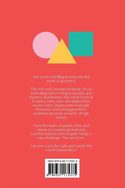The Fun Way to Master Geometry Your journey into the world of math continues with "Geometry Through Stories," the next exciting installment in Jenny Kellett's groundbreaking educational adventure series. This is no ordinary textbook; it's a thrilling ride through the captivating world of geometry, disguised as a page-turning mystery story. Our intrepid adventurers find themselves in a world where angles hide secret messages and shapes solve time-sensitive problems in mystical lands. From the basics of points, lines, and planes to complex geometrical transformations, each chapter brings a new challenge. The race is on. Through the adventures and challenges our characters face, students will master the key concepts of geometry, including: * Basic geometric terms and definitions * Properties of 2D and 3D shapes * Angle relationships * Triangle properties and the Pythagorean theorem * Perimeter, area, and volume calculations * Transformations and symmetry Each chapter ends with practice problems, giving students the chance to apply what they've learned in a practical, engaging way. These problems are designed to help reinforce the concepts, ensuring students have a strong grasp of geometry basics. Suitable for students in the 9th grade and up (age 14), this book is the perfect supplementary guide to classroom learning. Whether you're a parent looking to support your child's education, a teacher seeking creative resources, or a student eager for a unique, engaging approach to geometry, "Geometry Through Stories" is an indispensable tool on your mathematical journey. From author Jenny Kellett, the creator of "Algebra 1: The Mystery of the Algebraic Artifact," comes another masterful blend of education and adventure. With "Geometry: Journey into the World of Shapes and Angles," learning math has never been more thrilling! Order your copy today.