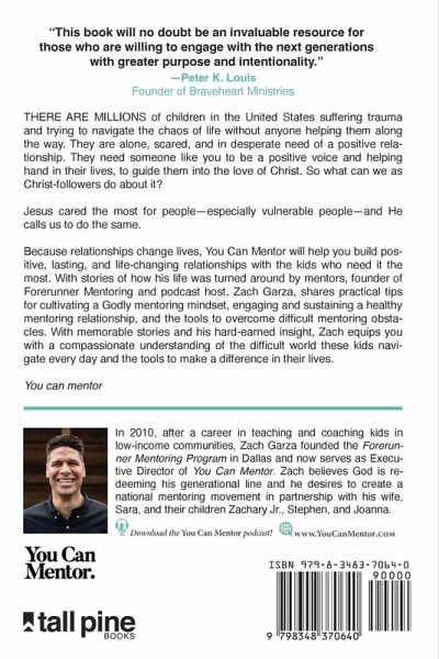 You Can Mentor: Empowering Christ-Followers to Make a Lasting Impact on the Next Generation There are millions of children navigating trauma and chaos without the guidance of a mentor in their lives. These children are scared, struggling, and in desperate need of hope.You Can Mentor equips Christ-followers to answer the call of discipleship, offering practical tools to help leaders build life-changing relationships through the lens of the gospel. In this inspiring and practical guide, Zach Garza-Executive Director and Founder of You Can Mentor-shares powerful stories of how mentoring transformed his life and the lives of others. Drawing from years of experience, Zach offers practical wisdom for cultivating a Christ-centered mentoring mindset, overcoming common obstacles, and sustaining meaningful connections with kids that reflect God's love. Whether you're a seasoned mentor or just starting, You Can Mentor gives you the tools to make a lasting difference. Discover how you can show vulnerable children the love of Christ, one relationship at a time. You CAN mentor.