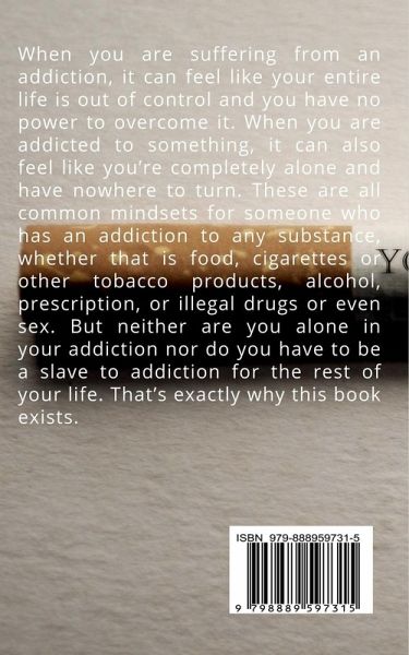 When you are suffering from an addiction, it can feel like your entire life is out of control and you have no power to overcome it. When you are addicted to something, it can also feel like you're completely alone and have nowhere to turn. These are all common mindsets for someone who has an addiction to any substance, whether that is food, cigarettes or other tobacco products, alcohol, prescription, or illegal drugs or even sex. But neither are you alone in your addiction nor do you have to be a slave to addiction for the rest of your life. That's exactly why this book exists. It is very easy to feel like you are the only one who is experiencing your particular addiction - or the level of addiction you're experiencing - but the truth is, millions of other people experience the same thing you are suffering from. That's because addiction affects more than 10% of the United States population. That means if you were to get on a typical city bus there are probably two or three people on that bus - besides you - that are suffering from some kind of addiction. Don't fool yourself either; having a food addiction or being unable to quit drinking alcohol is the same as an addiction to a drug or any other substance. Addiction is addiction, no matter what the substances.