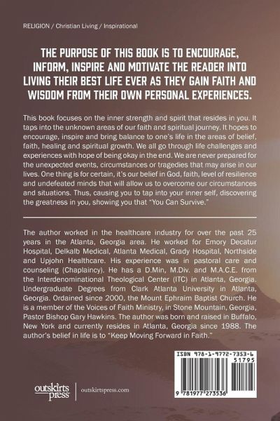 This book focuses on the inner strength and spirit that resides in you. It taps into the unknown areas of our faith and spiritual journey. It hopes to encourage, inspire and bring balance to one's life in the areas of belief, faith, healing and spiritual growth. We all go through life challenges and experiences with hope of being okay in the end. We are never prepared for the unexpected events, circumstances or tragedies that may arise in our lives. One thing is for certain, it's our belief in God, faith, level of resilience and undefeated minds that will allow us to overcome our circumstances and situations. Thus, causing you to tap into your inner self, discovering the greatness in you, showing you that "You Can Survive."