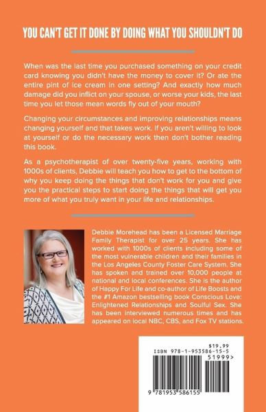 How to Stop Working So Hard at Getting What You Don't Want! When was the last time you purchased something on your credit card knowing you didn't have the money to cover it? Or ate the entire pint of ice cream in one setting? And exactly how much damage did you inflict on your spouse, or worse your kids, the last time you let those words fly out of your mouth? Changing your circumstances and improving relationships means changing yourself and that takes work. If you aren't willing to look at yourself or do the necessary work then don't bother reading this book. As a psychotherapist of over twenty-five years, working with 1000s of clients, Debbie will teach you how to get to the bottom of why you keep doing the things that don't work for you and give you the practical steps to start doing the things that will get you more of what you truly want in your life and relationships.