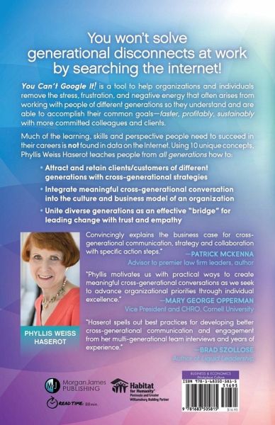 You Can't Google it! reveals how to take the stress, frustration, and negative energy out of working with people of different generations so that readers understand and can accomplish their common business development goals-and do it faster with more engaged and committed colleagues and clients.