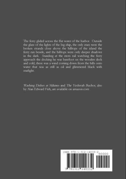 The ferry glided across the flat water of the harbor. Outside the glare of the lights of the big ship, the only stars were the broken strands close above the hilltops of the island the ferry ran beside, and the hilltops were only deeper shadows in the dark. Standing at the stern rail watching the ferry approach the docking he was barefoot on the wooden deck and cold, there was a wind coming down from the hills onto water that was as still as oil and glimmered black with starlight.