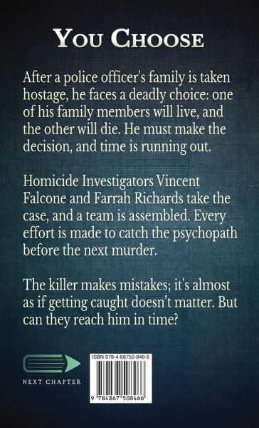 After a police officer's family is taken hostage, he faces a deadly choice: one of his family members will live, and the other will die. He must make the decision, and time is running out. Homicide Investigators Vincent Falcone and Farrah Richards take the case, and a team is assembled. Every effort is made to catch the psychopath before the next murder. The killer makes mistakes; it's almost as if getting caught doesn't matter. But can they reach him in time?