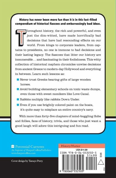 History has never been more fun than it is in this fact-filled compendium of historical fiascoes and embarrassingly bad ideas. Throughout history, the rich and powerful, and even just the dim-witted, have made horrifically bad decisions that have had resounding effects on our world. From kings to corporate leaders, from captains to presidents, no one is immune to bad decisions and their lasting legacy. The fiascoes that litter our history are innumerable ... and fascinating in their foolishness. This witty collection of historical mayhem chronicles unwise decisions from ancient Greece to modern-day Hollywood and everything in between. Learn such lessons as: Never trust Greeks bearing gifts of large wooden horses. Avoid building elementary schools on toxic waste dumps, even those with sweet monikers like Love Canal. Rabbits multiply like rabbits Down Under. Even if you use brightly colored paint on the boats, it's quite easy to misplace an entire country's navy. With more than forty-five chapters of mind-boggling flubs and follies, fans of history, trivia, and those who just want a good laugh will adore this intriguing and fun read.