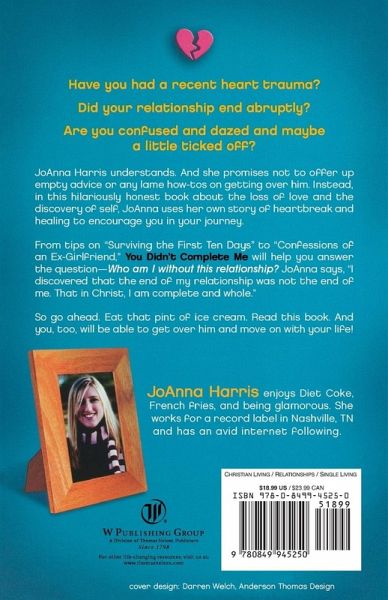 More often than not, women tend to lose themselves in relationships, believing they have found "The One"-- the discovery that signifies the end of loneliness. The assurance of happily every after. If this relationship is lost, all seems lost. But what happens when you meet "The One" and he turns out to be just someone? What do you do when the love of your life becomes the heartbreak of your life? JoAnna Harris understands. After a broken engagement, she was forced to confront the inevitable void after the break-up and truly answer the question -- Who am I without this relationship? While wading through intense heartbreak, JoAnna says, "I discovered that the end of my relationship was not the end of me. That in Christ, I am complete and whole." Using her own story of heartbreak and healing, JoAnna will make you laugh and encourage you in your own journey to healing and discovery.
