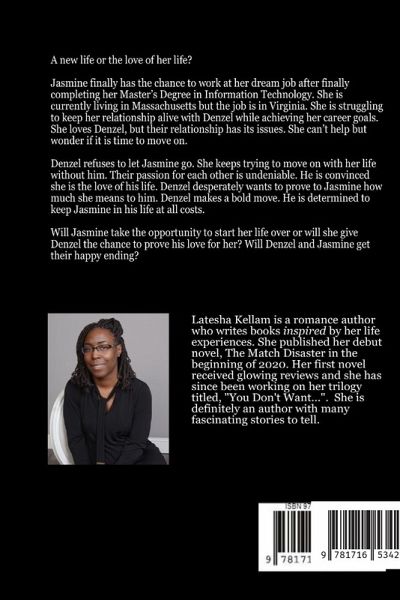 A new life or the love of her life? Jasmine finally has the chance to work at her dream job after finally completing her Master's Degree in Information Technology. She is currently living in Massachusetts but the job is in Virginia. She is struggling to keep her relationship alive with Denzel while achieving her career goals. She loves Denzel, but their relationship has its issues. She can't help but wonder if it is time to move on. Denzel won't let Jasmine go. She keeps trying to move on with her life without him. Their passion for each other is undeniable. He is convinced she is the love of his life. Denzel desperately wants to prove to Jasmine how much she means to him. Denzel makes a bold move. He is determined to keep Jasmine in his life at all costs. Will Jasmine take the opportunity to start her life over or will she give Denzel the chance to prove his love for her? Will Denzel and Jasmine get their happy ending?