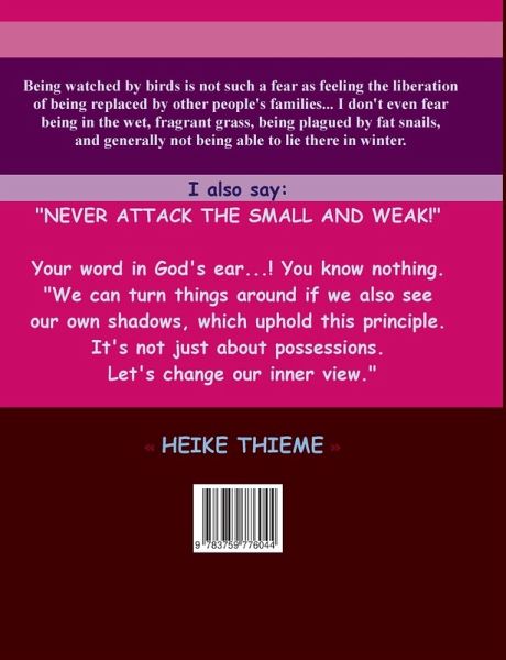 Letting go is a test. Longing makes all things bloom, possessions drag all things into the dust. With my view of nothing, they will also have to see that it is unimportant and they embraced my silence, that nothing is real. We can turn things around, if we also see our own shadows, which uphold this principle. It is not just about possessions. Let us change our inner view.