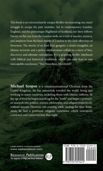 This book is an extraordinarily unique thriller documenting one man's struggle to escape his past mistakes. Set in contemporary London, England, and the picturesque Highlands of Scotland, our story follows David, on the run from the London mob, on a trail of murder, mystery, and mayhem from the hard streets of London to the dark alleyways of Inverness. The stories of an East-End gangster, a street evangelist, an Islamic terrorist, and a police markswoman collide in a story of loss, discovery, and ultimate redemption. It is a gripping thriller interlaced with biblical and historical revelations which can only lead to one inescapable conclusion: ""You Have Been Murdered!""