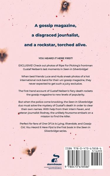 A gossip magazine, a disgraced journalist, and a rockstar, torched alive. You Heard It Here First! EXCLUSIVE! Check out photos of Ripe For Picking's frontman Gustaf Neilsen's last moments in Seen in Silverbridge! When best friends Luce and Huds sneak photos of a hot international rock band for their uni gossip magazine, they never expected to get such a juicy exclusive. The first-hand account of Gustaf Neilsen's fiery death rockets the gossip magazine to new levels of popularity. But when the police come knocking, the Seen In Silverbridge duo must solve the mystery of Gustaf's death in order to clear their own names. With help from their intern Faven, and veteran journalist Rodney, the unlikely foursome embark on a mission to find the killer. Perfect for fans of One Of Us Is Lying, Riverdale, and Gossip Girl, You Heard It Here First is the first book in the Seen in Silverbridge series.