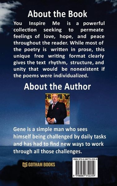 You Inspire Me is a powerful collection of poems seeking to permeate feelings of love, hope, and peace throughout the reader. While most of the poetry is written in prose, this unique free writing format clearly gives the text rhythm, structure, and unity that would be nonexistent if the poems were individualized.