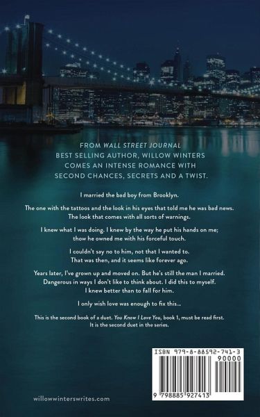 Book 1 in the seductive duet for Evan and Kat, from Wall Street Journal Bestselling Author, Willow Winters. A high heat and high emotion romance in the tempting and wealthy elite social circles in New York... and all the corruption that comes with it. I married the bad boy from Brooklyn. The one with the tattoos and the look in his eyes that told me he was bad news. The look that comes with all sorts of warnings. I knew what I was doing. I knew by the way he put his hands on me; how he owned me with his forceful touch. I couldn't say no to him, not that I wanted to. That was then, and it seems like forever ago. Years later, I've grown up and moved on. But he's still the man I married. Dangerous in ways I don't like to think about. I did this to myself. I knew better than to fall for him. I only wish love was enough to fix this... "My love for Willow's words grows with every book I read, the emotion that I felt reading this story will stay with me for a long time." - Julie Workman-Bookaholic Sisters Blog You Know I Love You is book 1 of a duet. It is the second duet in the series, but it can be read first.