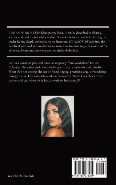 'YOU KNOW ME' is LKP's debut poetry book. It can be described as alluring, sentimental, and packed with emotion. Her voice is honest and bold, leaving the reader feeling deeply connected to the literature. 'YOU KNOW ME' goes into the depths of your soul and touches topics most wouldn't dare to go. A must read for all poetry lovers and those who are not afraid of the dark...