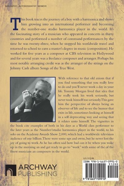 This book traces the journey of a boy with a harmonica and shows him growing into an international performer and becoming the number-one studio harmonica player in the world. It's the fascinating story of a musician who appeared in concerts in thirty countries and performed a number of command performances by the time he was twenty-three, when he stopped his worldwide travel and returned to school to earn a master's degree in music (composition). He worked for five years as a composer at CBS television in Hollywood and for several years was a freelance composer and arranger. Perhaps his most notable arranging credit was as the arranger of the strings on the Johnny Cash album Songs of the True West.