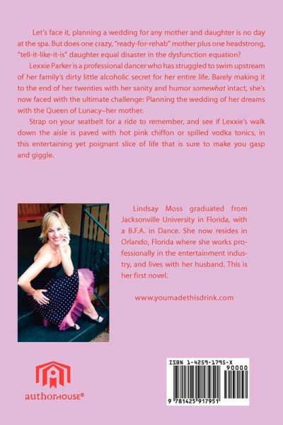 Let's face it, planning a wedding for any mother and daughter is no day at the spa. But does one crazy, "ready-for-reheb" mother plus one headstrong, "so-over-the-B.S." daughter equal disaster in the dysfunction equation? Lexxie Parker is a professional dancer who has struggled to swim upstream of her family's dirty little alcoholic secret for her entire life. Barely making it to the end of her twenties with her sanity and humor "somewhat" intact, she's now faced with the ultimate challenge: Planning the wedding of her dreams with the Queen of Lunacy--her mother. Strap on your seatbelt for a ride to remember in this entertaining yet poignant slice of life that is sure to make you gasp and giggle, and see if Lexxie's walk down the aisle is paved with hot pink chiffon or spilled vodka and tonics.