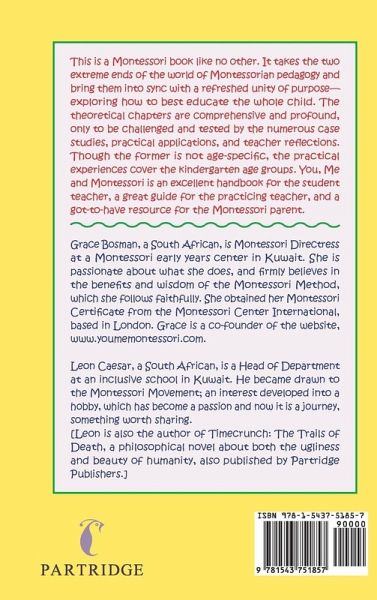 Grace Bosman, a South African, is Montessori Directress at a Montessori early years center in Kuwait. She is passionate about what she does, and firmly believes in the benefits and wisdom of the Montessori Method, which she follows faithfully. She obtained her Montessori Certificate from the Montessori Center International, based in London. Grace is a co-founder of the website, www.youmemontessori.com. Leon Caesar, a South African, is a Head of Department at an inclusive school in Kuwait. He became drawn to the Montessori Movement; an interest developed into a hobby, which has become a passion and now it is a journey, something worth sharing. [Leon is also the author of Timecrunch: The Trails of Death, a philosophical novel about both the ugliness and beauty of humanity, also published by Partridge Publishers.]