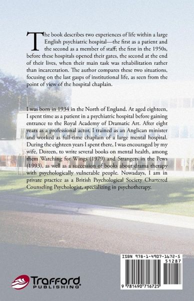 The book describes two experiences of life within a large English psychiatric hospital-the first as a patient and the second as a member of staff; the first in the 1950s, before these hospitals opened their gates, the second at the end of their lives, when their main task was rehabilitation rather than incarnation. The author compares these two situations, focusing on the last gasps of institutional life, as seen from the point of view of the hospital chaplain.