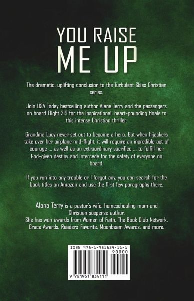 The dramatic, uplifting conclusion to the Turbulent Skies Christian series. Join USA Today bestselling author Alana Terry and the passengers on board Flight 219 for the inspirational, heart-pounding finale to this intense Christian thriller. Grandma Lucy never set out to become a hero. But when hijackers take over her airplane mid-flight, it will require an incredible act of courage ... as well as an extraordinary sacrifice ... to fulfill her God-given destiny and intercede for the safety of everyone on board. You Raise Me Up is the sixth and final novella in the Turbulent Skies Christian thriller series, an unforgettable collection of interconnected stories about strangers traveling together aboard a doomed flight. Find out why Christian fiction readers can't stop raving about this heart-stopping, fast-paced series you can devour in a single sitting. If you like harrowing stories of faith and redemption, spine-tingling adrenaline surges, and heart-pounding Christian suspense, you'll love these edge-of-your-seat novellas by USA Today bestselling author. Dive into the breathtaking Turbulent Skies series today. Just be careful ... you may not be able to read just one!