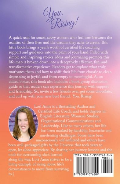 FINALIST in the 2018 INTERNATIONAL BOOK AWARDS: A quick read for smart, savvy women who feel torn between the realities of their lives and the dreams they ache to create. This little book brings a year’s worth of certified life coaching support and guidance into the palm of your hand. Filled with simple and inspiring stories, ideas and journaling prompts this life-map is broken down into a deceptively effective, fun, and transformative experience. Readers get to explore what truly motivates them and how to shift their life from chaotic to clear, depressing to joyful, and from empty to meaningful. As an added bonus, this book also includes a book group discussion guide so that readers can experience this journey with support and friendship. So, invite a few friends over, get some chocolate, and curl up with your new best friend: You. Rising!