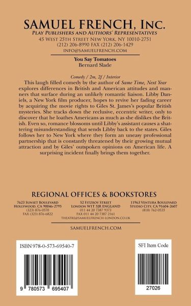 Full Length, Comedy / 2m, 2f / 2 ints. This laugh filled comedy by the author of Same Time, Next Year explores differences in British and American attitudes and manners that surface during an unlikely romantic liaison. Libby Daniels, a New York film producer, hopes to revive her fading career by acquiring the movie rights to Giles St. James's popular British mysteries. She tracks down the reclusive, eccentric writer, only to discover that he loathes Americans as much as she dislikes the Britis