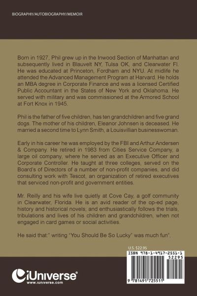 Born in 1927, Phil grew up in the Inwood Section of Manhattan and subsequently lived in Blauvelt NY, Tulsa OK, and Clearwater Fl. He was educated at Princeton, Fordham and NYU. At midlife he attended the Advanced Management Program at Harvard. He holds an MBA degree in Corporate Finance and was a licensed Certified Public Accountant in the States of New York and Oklahoma. He served with military and was commissioned at the Armored School at Fort Knox in 1945. Phil is the father of five children, has ten grandchildren and five grand dogs. The mother of his children, Eleanor Johnsen is deceased. He married a second time to Lynn Smith, a Louisvillian businesswoman. Early in his career he was employed by the FBI and Arthur Andersen & Company. He retired in 1983 from Cities Service Company, a large oil company, where he served as an Executive Officer and Corporate Controller. He taught at three colleges, served on the Board's of Directors of a number of non-profit companies, and did consulting work with Tescot, an organization of retired executives that serviced non-profit and government entities.