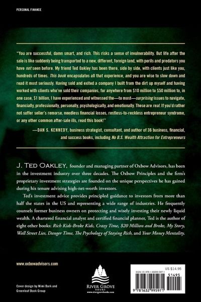 J. Ted Oakley, founder and managing partner of Oxbow Advisors, has been in the investment industry over three decades. The Oxbow Principles and the firm's proprietary investment strategies are founded on the unique perspectives he has gained during his tenure advising high-net-worth investors. Ted's investment advice provides principled guidance to investors from more than half the states in the US and representing a wide range of industries. He frequently counsels former business owners on protecting and wisely investing their newly liquid wealth. A chartered financial analyst and certified financial planner, Ted is the author of 8 other books: Rich Kids-Broke Kids, Crazy Time, $20 Million and Broke, My Story, Wall Street Lies, Danger Time, The Psychology of Staying Rich, and Your Money Mentality.