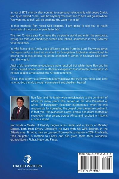 In July of 1975, shortly after coming to a personal relationship with Jesus Christ, Ron Tyler prayed, "Lord, I will be anything You want me to be! I will go anywhere You want me to go! I will do anything You want me to do!" In that moment, Ron heard God respond, "I am going to use you to reach hundreds of thousands of people for Me." The next 13 years saw Ron leave the corporate world and enter the pastorate, having his faith and obedience tested and refined, sometimes in very extreme circumstances. In 1988, Ron and his family got a different calling from the Lord. They were given the opportunity to head up an effort by Evangelism Explosion International to spread the gospel across the entire continent of Africa. In his heart, Ron knew that this was it! Again, faith and extreme obedience were required, but while there, Ron and his family helped pioneer a new method of evangelism that ultimately resulted in 25 million people saved across the African continent. This is their story-a story which clearly displays the truth that there is no limit to what God can do through surrendered and obedient hearts!
