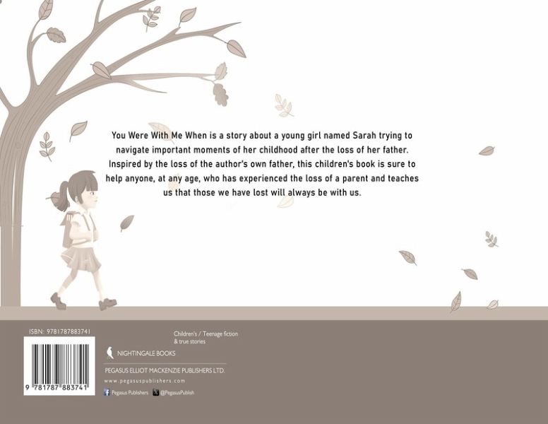 You Were With Me When is a story about a young girl named Sarah trying to navigate important moments of her childhood after the loss of her father. Inspired by the loss of the author's own father, this children's book is sure to help anyone, at any age, who has experienced the loss of a parent and teaches us that those we have lost will always be with us.