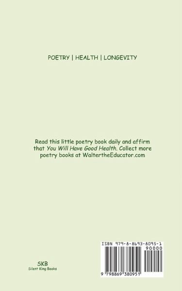 Read this little poetry book daily and affirm that You Will Have Good Health. Collect more poetry books at WaltertheEducator.com. I pray you have good health. For where two or three are gathered together in my name, there am I in the midst of them - Matthew 18:20