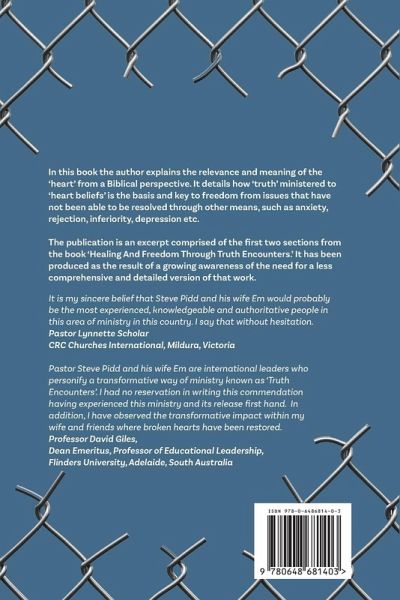 In this book the author explains the relevance and meaning of the ‘heart’ from a Biblical perspective. It details how ‘truth’ ministered to ‘heart beliefs’ is the basis and key to freedom from issues that have not been able to be resolved through other means, such as anxiety, rejection, inferiority, depression etc. The publication is an excerpt comprised of the first two sections from the book ‘Healing And Freedom Through Truth Encounters.’ It has been produced as the result of a growing awareness of the need for a less comprehensive and detailed version of that work.